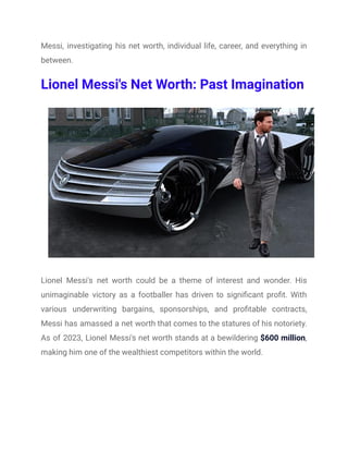 Lionel Messi, a global football icon, has an impressive net worth of $600 million and a rich personal life, married to his childhood sweetheart, Antonela Roccuzzo. His career highlights include his remarkable agility, partnership with Kylian Mbappé at Paris Saint-Germain, and a lasting legacy from his time at Barcelona. Beyond football, Messi serves as a cultural symbol, inspiring future generations and captivating fans worldwide.
