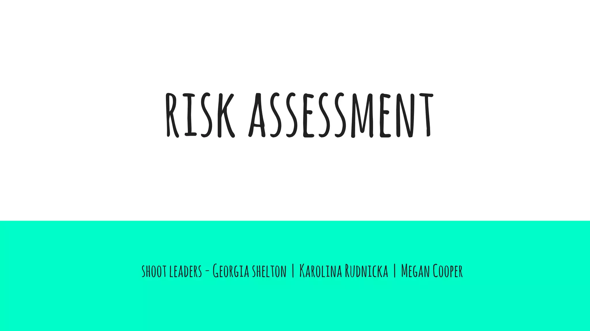 This document contains a risk assessment with definitions for probability, consequence, and risk level ratings. It then lists some potential hazards during a shoot, along with the probability, consequence, and resulting risk ratings, and proposes control measures.