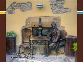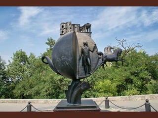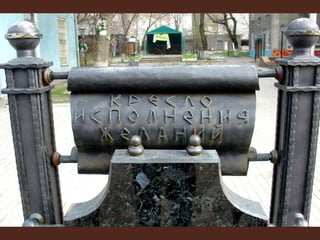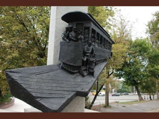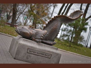 This document lists several unusual monuments located across various regions in Ukraine, including Berdyansk, Poltava, Dnipropetrovsk, Donetsk, Kharkiv, Kamianka-Dniprovska, Kherson region, Nezhin, Lviv, Odessa, Chernivtsi, Vinnytsia, and Kiev. It welcomes the reader to visit these locations.