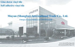 Muyun (Shanghai) International Trade Co., Ltd oversees international business for the UNYUIN flooring brand. UNYUIN began production in 2007 and was first made public in 2012. It now has R&D, production, sales, international trade, and after-sales service departments with an annual output of 4 million square meters. Their mission is to help customers find suitable vinyl floor tiles, and their vision is for vinyl floor tile purchase and installation to be easy.