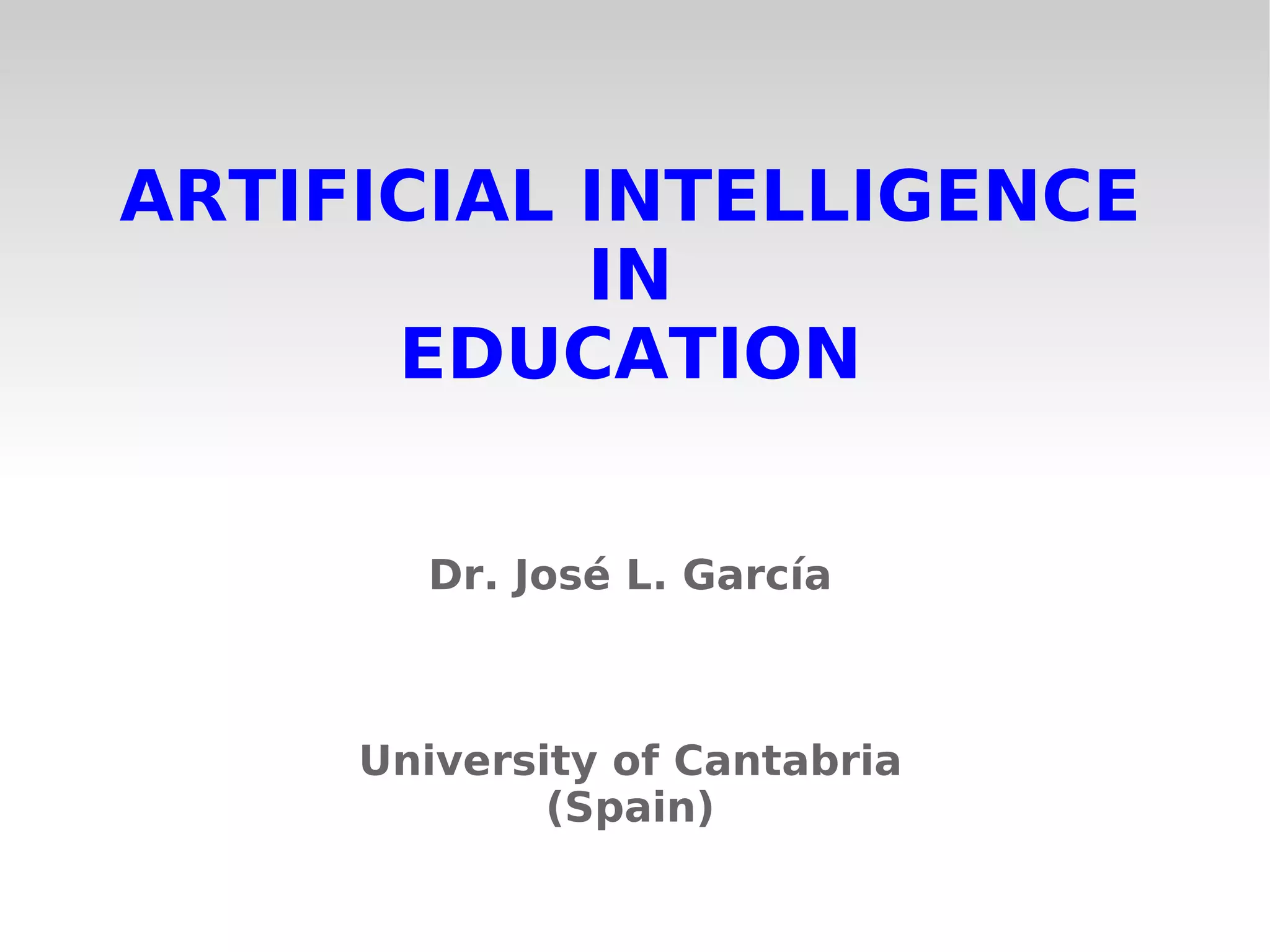 ![SEARCH ENGINES (text classification ) SPAM SPELL CHECKING -> [16.1; 16.2] AUTOMATIC TRANSLATION -> [23.5] SUMMARISING -> [18] PLAGIARISM -> [30] DIALOGUE SYSTEMS EXAMPLES Examples at: http://bit.ly/aS87GV](https://image.slidesharecdn.com/uopseminarweb-110305173152-phpapp01/85/Artificial-Intelligence-in-Education-7-320.jpg)