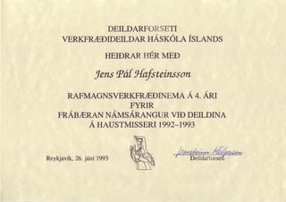 This document is from the Icelandic Teachers' Union and concerns a report on the status of the Teachers' School in Iceland. It was written by Yngve Steinsson, chairman of the Teachers' Union, and discusses the annual report for the Teachers' School for the years 1992-1993.
