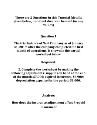 The document outlines the ACC 290 Week 4 Apply Connect Assignment that includes two questions related to accounting worksheets. It provides specific adjustments needed for a trial balance and instructs students to prepare an income statement, statement of owner's equity, and balance sheet. Additionally, it poses analytical questions regarding adjustments to prepaid insurance and advertising.