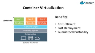 Mohammed Zaghloul is a senior front-end developer who has experience with C#, Angular, jQuery, and Ember. He will be giving a workshop on Docker that covers: (1) a quick introduction to Docker, (2) running a HelloWorld Docker container, and (3) building a Docker image and creating a containerized web application. Docker allows developers to package applications and dependencies into standardized units called containers that can be run anywhere. It uses a client-server architecture where the Docker client communicates with the Docker daemon to build, run, and distribute containers. Important concepts include Docker images, which are templates for creating containers, and containers, which are runnable instances of images.