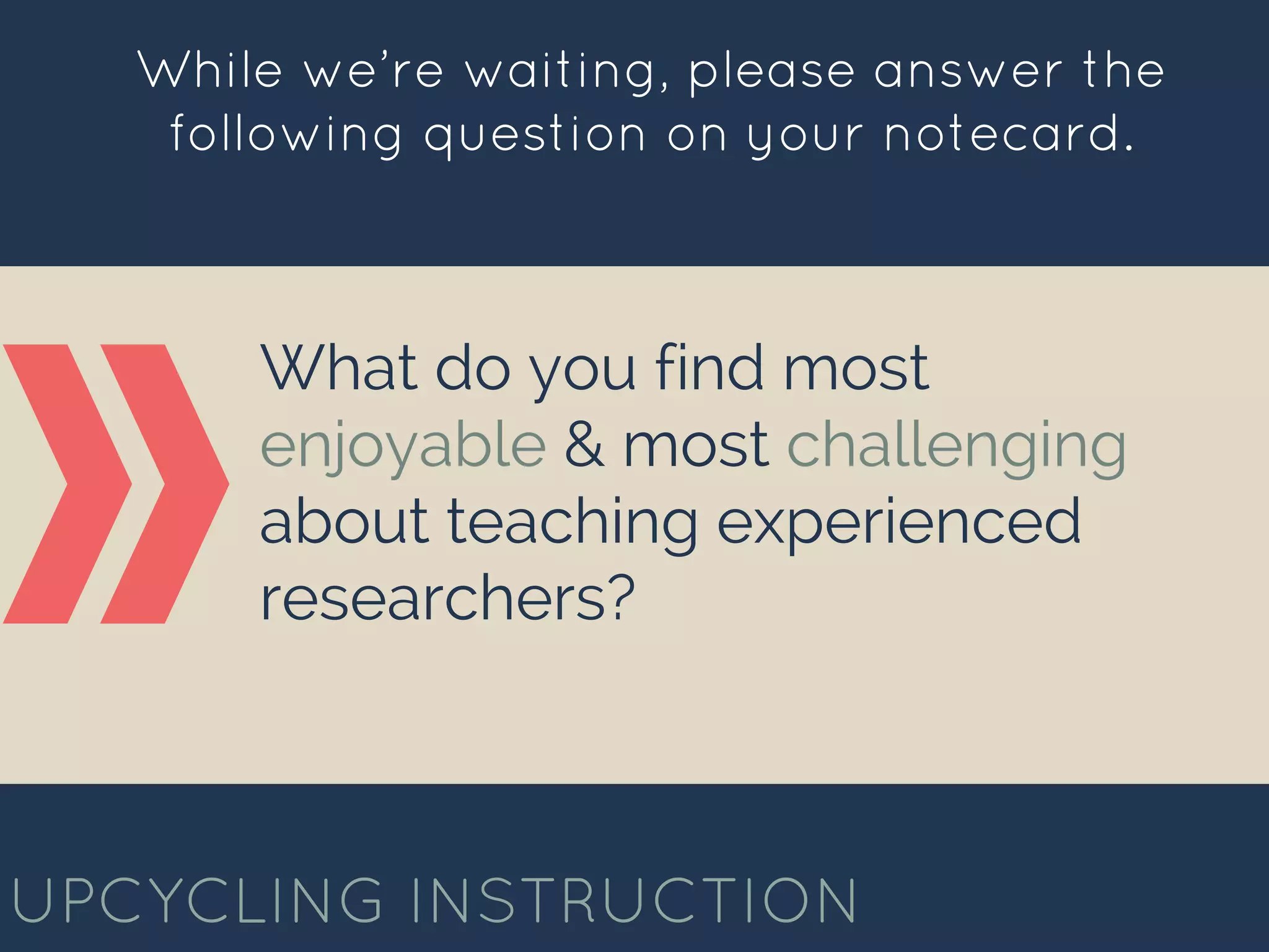This document discusses teaching information literacy skills to experienced researchers. It begins with a librarian survey that found most librarians teach upper-level undergraduates, faculty/researchers, and graduate students. When asked what they enjoy most about teaching experienced researchers, common responses included that it is intellectually stimulating, they enjoy teaching advanced concepts, and empowering students. Challenges included teaching students with varying skill levels and lack of subject expertise. The document then discusses effective teaching approaches like teaching as conversation, peer learning, and creating safe spaces. It provides examples of how to implement these approaches and concludes with suggestions for developing individual learning activities.