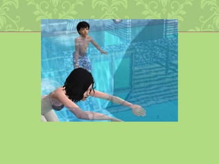 Liam lacht tevredenmee en springt van de duikplank af. Hij klapt met zijn buik op het water, maar negeert de pijn compleet als hij naar boven zwemt.