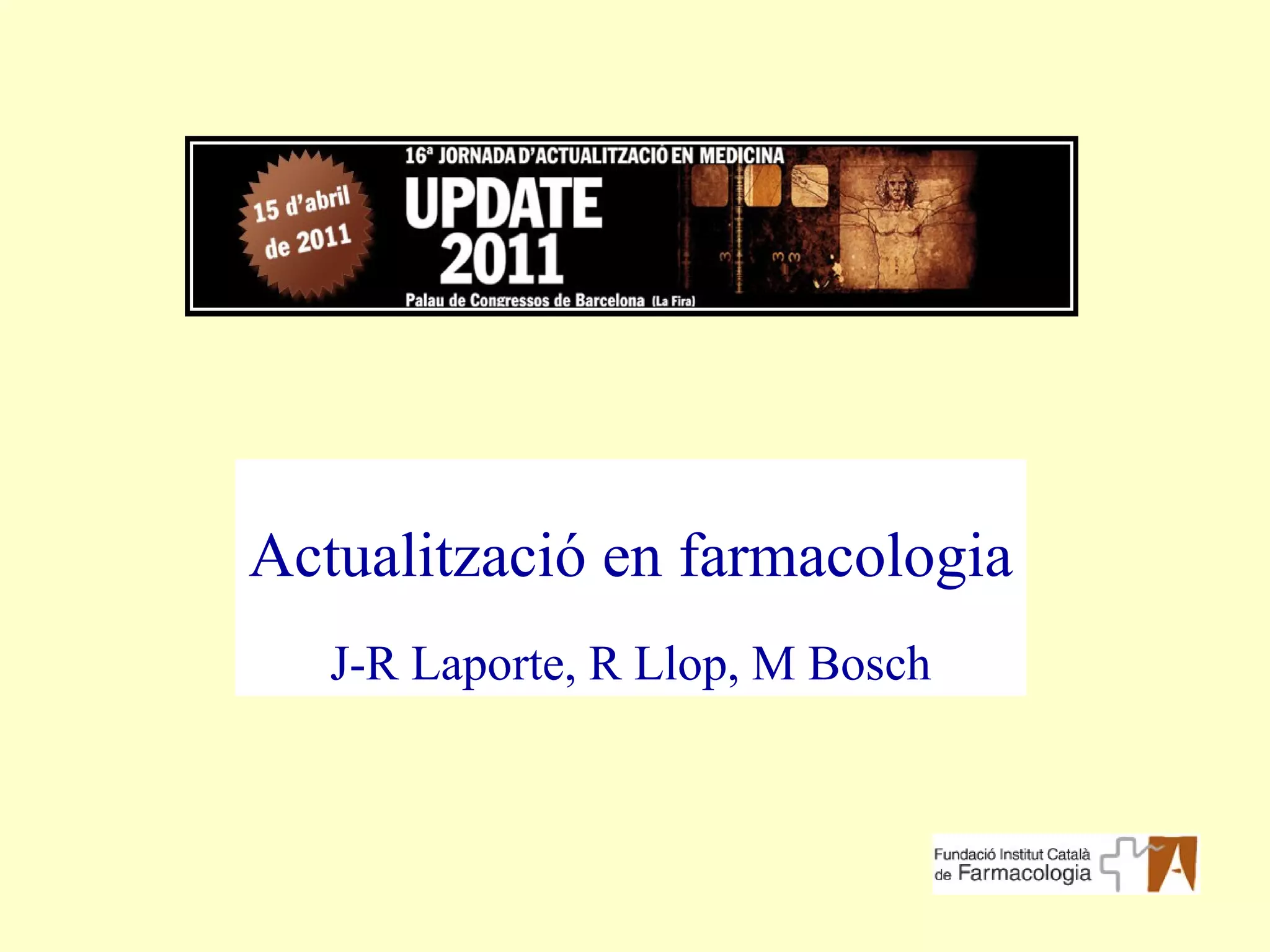 Asma i MPOCAntidiabètics Antiepilèptics Gent gran polimedicada Altres: Hipolipemiants Bifosfonats Antihipertensius i càncer Farmacovigilància vacunes Actualització en Farmacologia