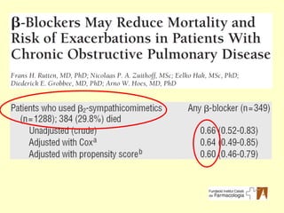 Cohort de 2.230pacients amb MPOC 665 tractats amb B β A + 1.565 no tractats Seguiment 7,2 anys 1.288 tractats amb estimulants β 2