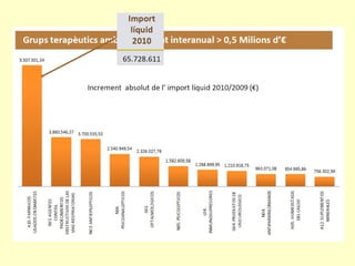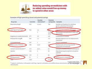 (4 grups) Estalvianual (M€) Substitució 10 primers fàrmacs pel de preu més barat 90 Substitució de tots els fàrmacs pel de preu més barat 203 Substitució per equivalents terapèutics (4 grups) 24 Incentivació (de 27% a 30%) 55 Total 169-282