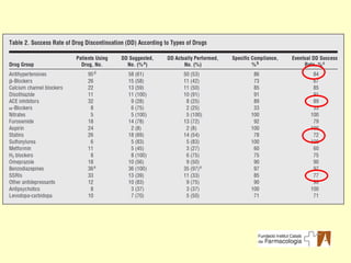 Es va recomanar311 retirades de medicaments (58%) en 64 pacients Se’n van poder retirar amb èxit un 81% (252)