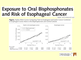Incidència per 1.000i any Càncer d’esòfag Càncer gàstric Exposats a bifosfonats 0,48 0,22 No exposats a bifosfonats 0,44 0,24