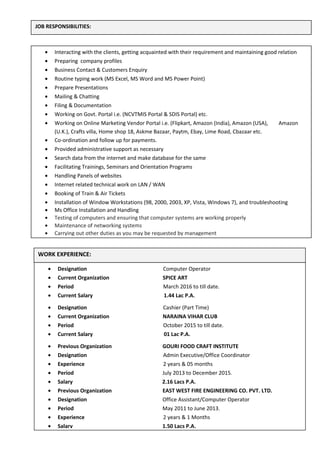 The document is a resume for Mahtab Alam Siddiqui providing personal and professional details. It includes information on his contact details, educational background having passed 10th and 12th grade, technical skills in MS Office and internet functions, work experience as a computer operator and admin executive, and personal details like date of birth and marital status. The resume aims to showcase Siddiqui's qualifications for a job seeking to enhance professional skills in a stable workplace.