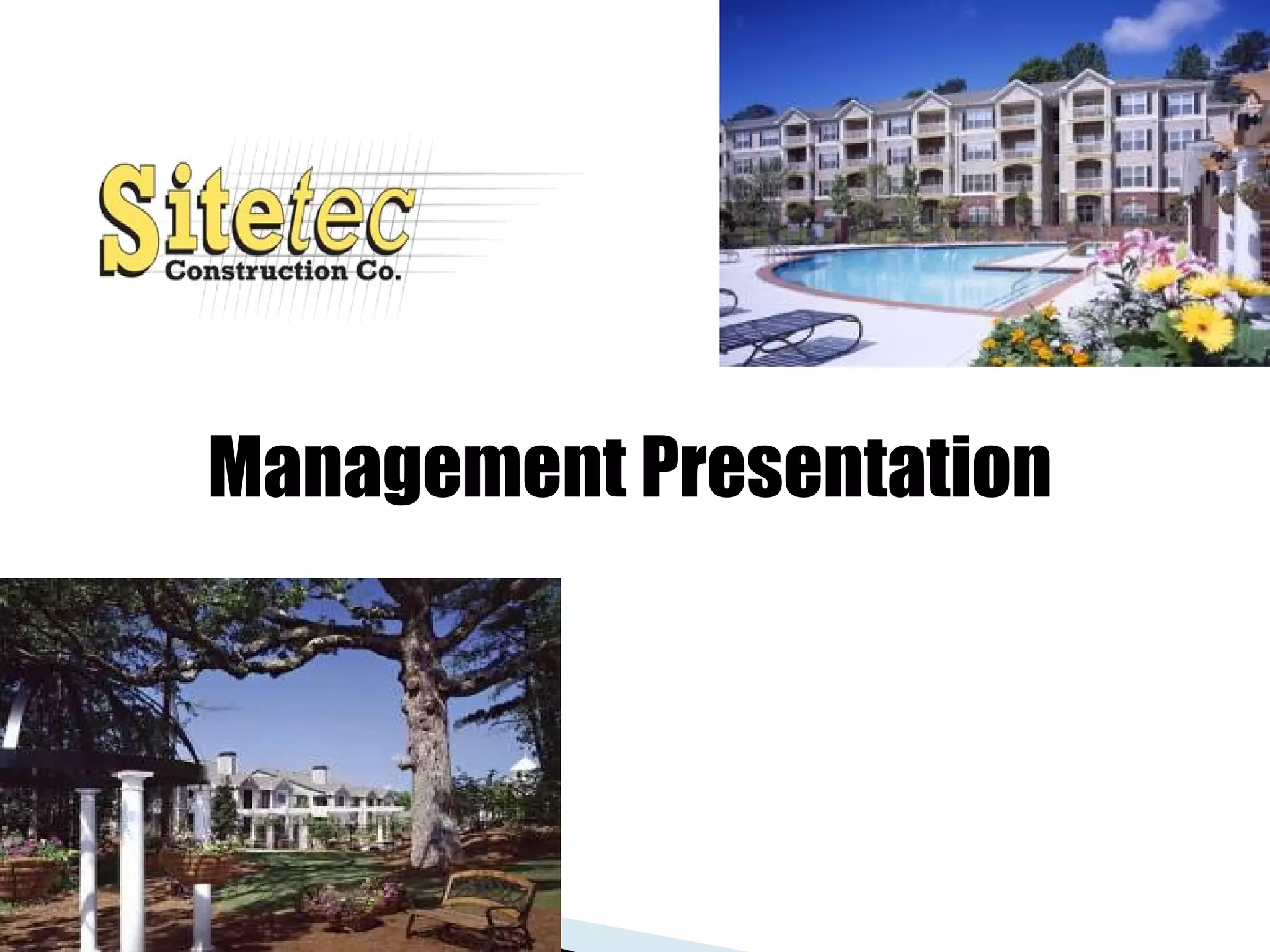 Sitetec Construction is a multi-family renovation specialist that has completed over 6,000 projects in 13 states. They strive to be the long-term choice for customers by prioritizing integrity, being worry-free, and finding solutions. They achieve excellence through hiring professionals that share their values, continuous improvement, and positive community contributions.
