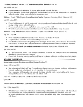 Lisa Jean Humphreys has 18 years of experience in special education, focusing on curriculum modification and individualized education plans (IEPs) for students with various needs. Her professional background includes teaching roles in middle and elementary schools, where she effectively communicated with families and implemented intervention programs, resulting in a 90% increase in student comprehension levels. She holds a Master's degree in Reading and two Bachelor's degrees in Special Education and Elementary Education.