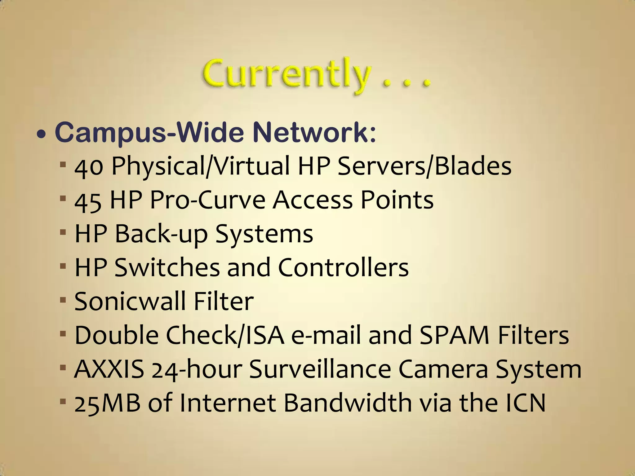 This document discusses the current technology infrastructure and resources across elementary, middle, and high school levels. It includes a discussion of moving towards a BYOD (bring your own device) model and the challenges and benefits. A proposal is made to add additional iPad and laptop carts to provide a dual-platform approach and allow for a full BYOD implementation over the next year across all grade levels. The future plans outlined include continuing a hybrid approach, monitoring industry trends, and providing students resources to obtain their own devices and internet access.