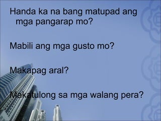 Ang Nuworkz ay isang networking company na nag-aalok ng iba't ibang produkto tulad ng perfumes at organic soaps habang nagbibigay ng maraming paraan upang kumita, kasama na ang direct selling at commission structures. May siyam na paraan upang kumita, kabilang ang matrix commission at profit sharing, na nag-aalok ng magandang kita kahit na walang recruitment. Ang sistema ng Nuworkz ay walang strong leg, kaya lahat ng miyembro ay may pagkakataon na kumita nang walang bakante sa kanilang downline.