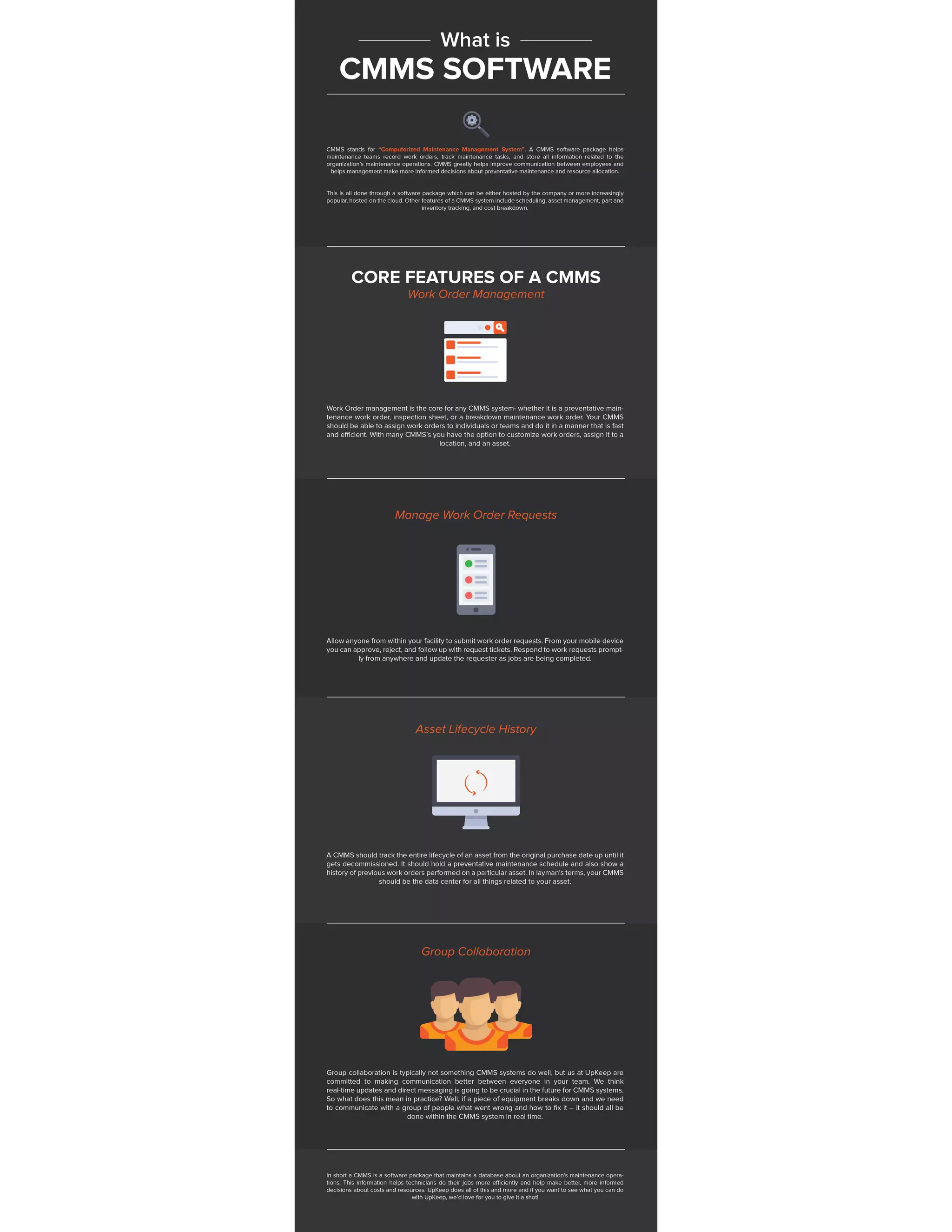 What is a CMMS? Infographic about CMMS from UpKeep Maintenance Management. Facility Management and Work Order Software Visit us on the web to learn more https://onupkeep.com/
