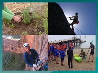 Naturalists at Large is an outdoor education program that has served over 200 schools in California for over 20 years. They lead multi-day trips for students in grades K-12, accommodating groups of 15 to over 200 students. Experienced instructors lead hands-on lessons in environmental science, outdoor skills, and history at various natural locations across California and on the Colorado River. The program provides all necessary equipment, meals, and emergency support to ensure safe and educational experiences for students.