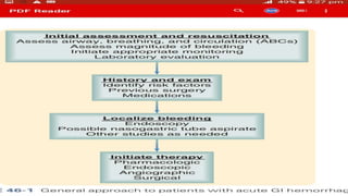 - Principles of management including initial assessment, resuscitation, localization of bleeding site usually through endoscopy, and risk stratification to determine need for inpatient care or intervention.