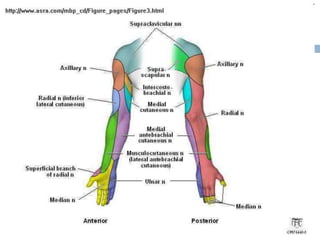 1) The document outlines different techniques for blocking the brachial plexus including interscalene, supraclavicular, infraclavicular, and axillary approaches.