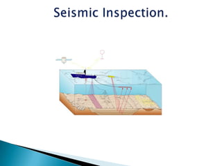 The document discusses the upstream oil sector, which involves searching for and extracting crude oil and natural gas. It describes the process of using 3D seismic investigations to identify oil reserves underground, then drilling oil rigs to access the oil. There are different types of rigs used for onshore versus offshore drilling. The drilling process involves installing casing pipes and other equipment to prepare the well for production.