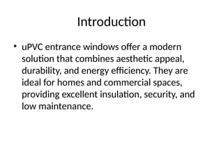 A uPVC entrance window is typically placed near or around the main entrance of a home or building, serving both a decorative and functional purpose. It allows natural light to filter into entryways, enhances visibility, and improves ventilation—all while creating a welcoming impression for visitors. Unlike traditional wooden or aluminum frames, uPVC frames are made from a high-grade plastic that is rigid, weather-resistant, and incredibly durable.