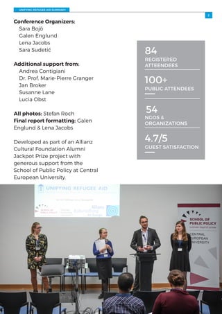 The Unifying Refugee Aid project brought together over 80 participants from more than a dozen NGOs assisting refugees in Central and Eastern Europe. Through workshops, seminars and discussions over two days in Budapest, Hungary, participants shared their experiences assisting refugees in different countries, identified areas for cooperation, and discussed best practices for providing aid and preventing burnout among aid workers. The project aimed to facilitate collaboration between organizations supporting refugees in the region.