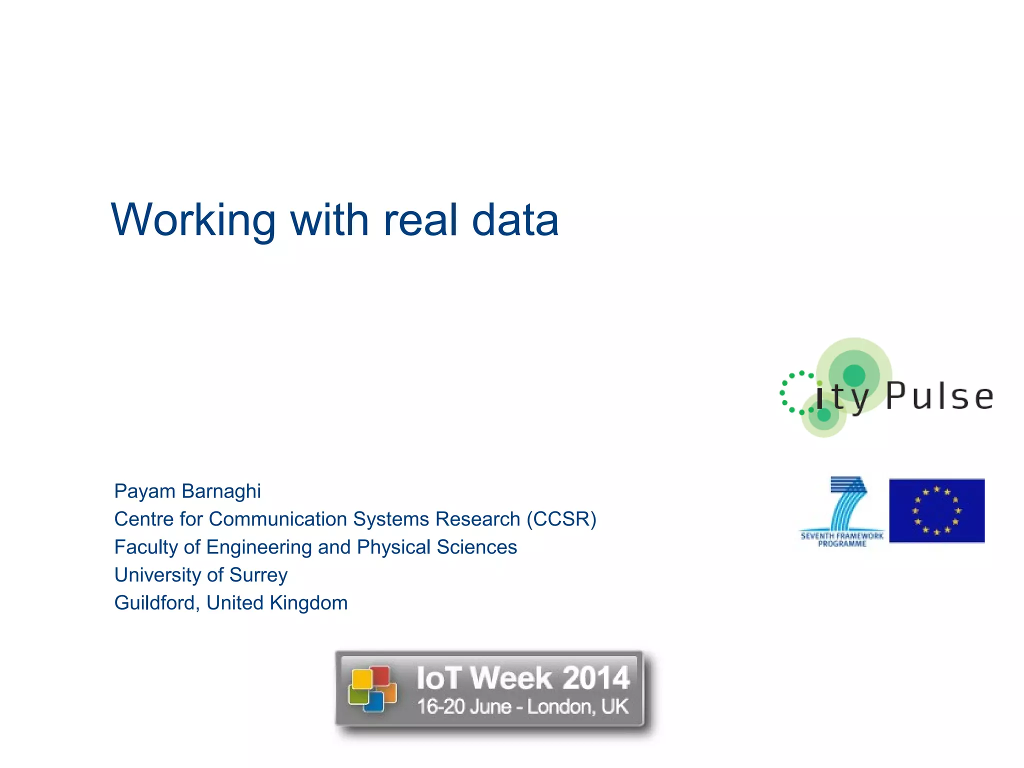 This document discusses challenges and opportunities around working with real-world data. It notes that while data is plentiful, real-world data is difficult to obtain due to issues like data silos and privacy concerns. It also discusses problems with data interoperability, quality, reliability, and needing more than just analytics to gain insights. The document advocates for linked open data streams with metadata and scalable analytics tools combined with domain knowledge to create actionable knowledge from real-world data. It concludes by listing challenges and opportunities in providing infrastructure, publishing and analyzing heterogeneous and private data at scale.