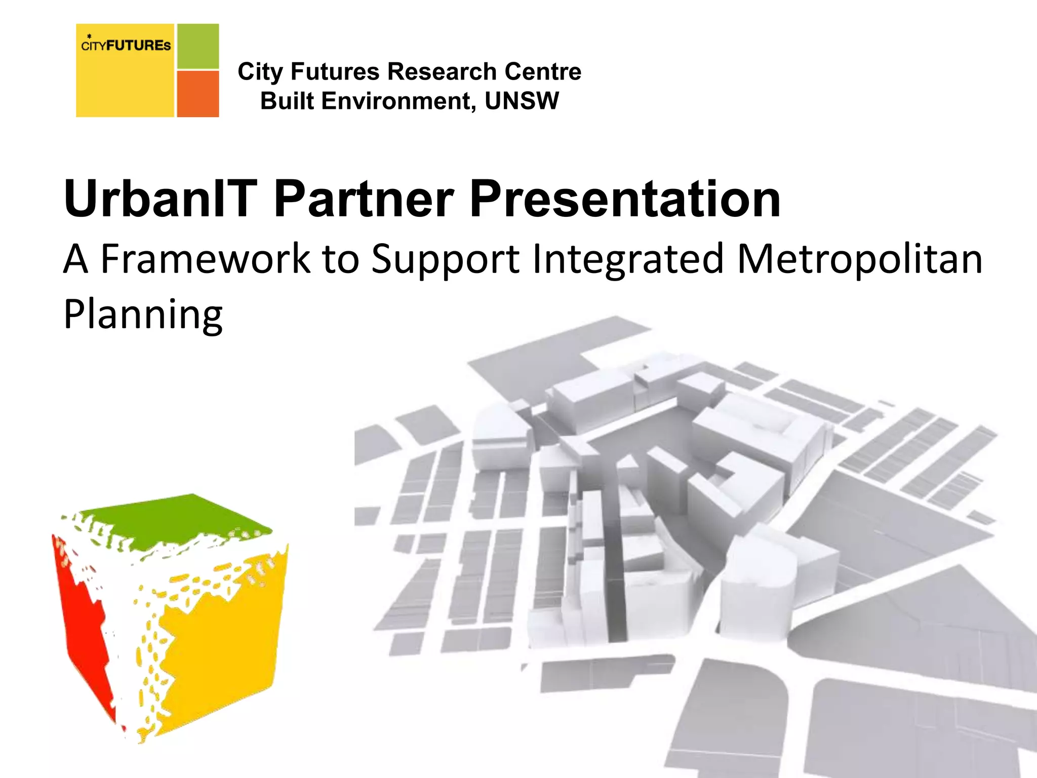 This document provides an overview of the UrbanIT project, which aims to develop an urban information modeling framework to support integrated metropolitan planning. It discusses the development of an urban information model for the Green Square area in Sydney, based on building information modeling (BIM) standards. The framework uses ontologies and open standards to integrate diverse planning, social and spatial data sources. Example applications include context analysis, compliance checking and BASIX energy assessment. The project demonstrates how an urban information model can help decision-making and management of large-scale urban development projects.