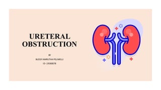 This document discusses ureteral obstruction, which is a blockage in the ureters that connect the kidneys to the bladder. It can be caused by various congenital issues, injuries, tumors, or other problems that prevent the normal flow of urine. Left untreated, ureteral obstruction can lead to urinary tract infections, kidney damage, and even kidney failure or sepsis. Treatment aims to remove or bypass the blockage through minimally invasive or open surgical procedures, with the goal of restoring urine flow and preventing long-term kidney damage.