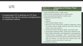 Uncomplicatedupper and lower UTI are most often caused by E. coli,