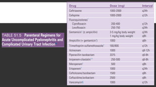 #10 Pivmecillinam, an extended gram-negative spectrum penicillin used only for treatment of UTI, is an appropriate choice for therapy in regions where it is available (availability limited to some European countries; not licensed and/or available for use in North America), because of minimal resistance and propensity for collateral damage, but efficacy rates are notably lower than with other recommended agents.26 Pivmecillinam also may have a role in the treatment of ESBL-producing uropathogens