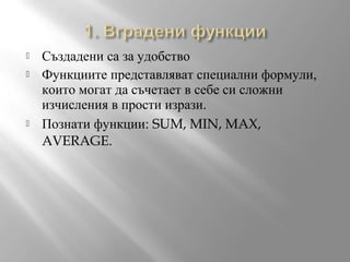Познати функции: SUM, MIN, MAX,