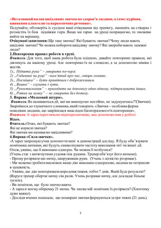вживання алкоголю, наркотичних речовин; розвивати вміння відстоювати