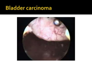 The document discusses prostate cancer, including that it is the most common malignancy of the male urogenital tract, with about 10,000 cases per year in the UK. It is rare before age 50 and found in 80% of men older than 80 upon autopsy. Prostate cancer arises in the prostate gland and can spread through the capsule, lymph nodes, bones, and other sites. Risk factors include family history and diet. Screening includes digital rectal exam and PSA testing, while diagnosis involves biopsy. Staging uses the TNM system and Gleason grading provides a prognosis. Treatment depends on stage and includes surgery, radiation, hormone therapy, and active surveillance.