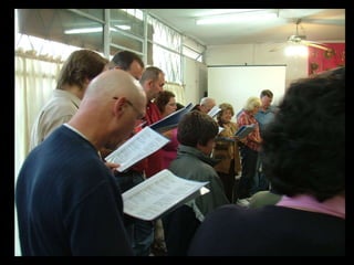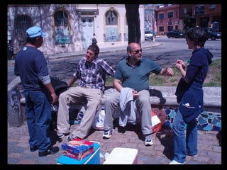 The document provides details about a trip to Uruguay in 2009, including names of people who went, missionaries they visited, activities like stuffing envelopes with the Gospel of John and visiting sites like the Rambla, and morning meetings that included devotions, debriefing and training. Teams were formed for activities including Ron, Janie and Ben's team. Travel was cramped at times, such as five men traveling in a taxi.