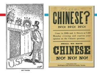 The document discusses several factors that contributed to the United States becoming an industrial giant, including natural resources, immigration, and government assistance to business. Immigrants came from many places and were drawn to opportunities in America. The growth of railroads and industry led to urbanization and economic and social challenges, while labor unrest emerged over working conditions.