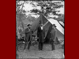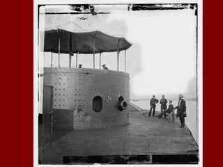 The document summarizes key battles and events in the Eastern theater of the American Civil War between 1861-1862. It describes the First Battle of Bull Run in July 1861, where Confederate troops halted the Union advance. In November 1861, George McClellan took command of the Union army. The document then outlines several battles in Virginia in 1862, including the Seven Days Battle where Robert E. Lee forced McClellan to retreat from Richmond. It also discusses the bloody Battle of Antietam in Maryland in September 1862, which halted the Confederate invasion of the North. Finally, it briefly summarizes the naval war, including the famous duel between the C.S.S. Virginia and U.S.S. Monitor at Hampton Roads in