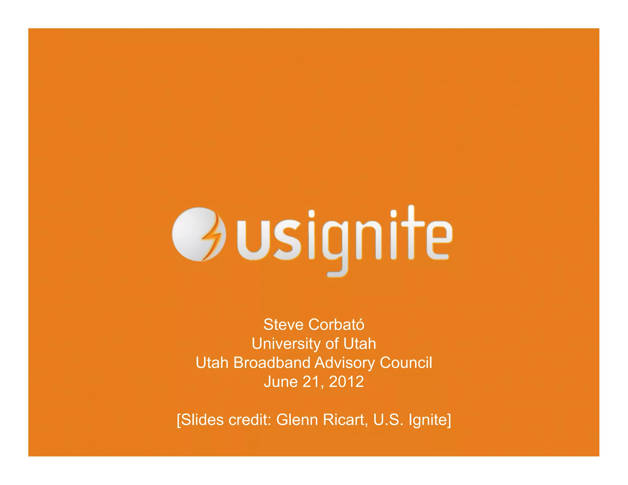 This document discusses the Utah Broadband Advisory Council and next-generation technologies. It outlines the public-private partnership of the U.S. Ignite organization and its goals of developing compelling applications using software-defined networking and gigabit connectivity. Advice is provided on how to get involved with U.S. Ignite, future-proof networks, develop next-gen apps, and leverage NSF support and funding opportunities.