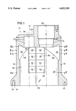 The patent describes a variable displacement screw-type compressor. It has at least one main rotor and one subsidiary rotor housed together that convey a medium from an inlet to an outlet. At least one housing segment fitted to slide transversely to the rotor axes defines the inlet. This allows the inlet channel length and thus the compression ratio and feed rate to be adjusted, improving efficiency over prior designs. The housing segments are guided in wells of the housing and each has a length corresponding to the axial distance between tooth contact points for a discrete adjustment corresponding to the rotor graduations.