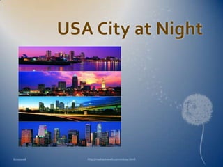 The document contains a series of links to images and descriptions related to various iconic urban scenes in the USA, all dated June 20, 2008. It highlights views of cities at night, skylines, and snowy landscapes. Included locations feature Salt Lake City and landmarks like the White House in Maryland.