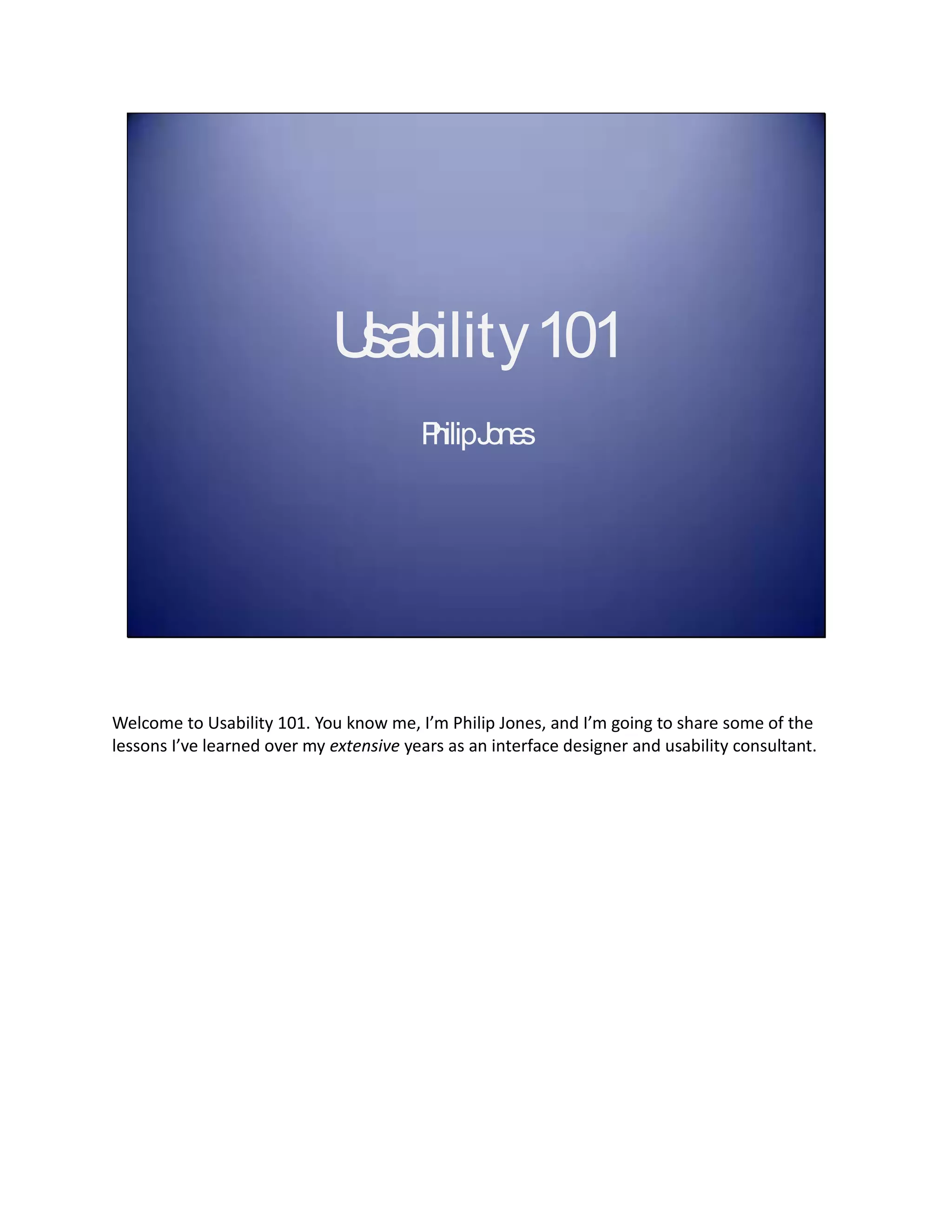 This document provides a summary of a presentation on usability principles. It discusses 5 key ideas: