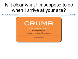 Usability is important for websites. The document discusses usability testing and how images should be clickable to improve conversions. It also questions what metrics a website hopes to improve with redesigns and recommends usability testing to ensure users understand the purpose and key information within 5 seconds.