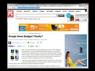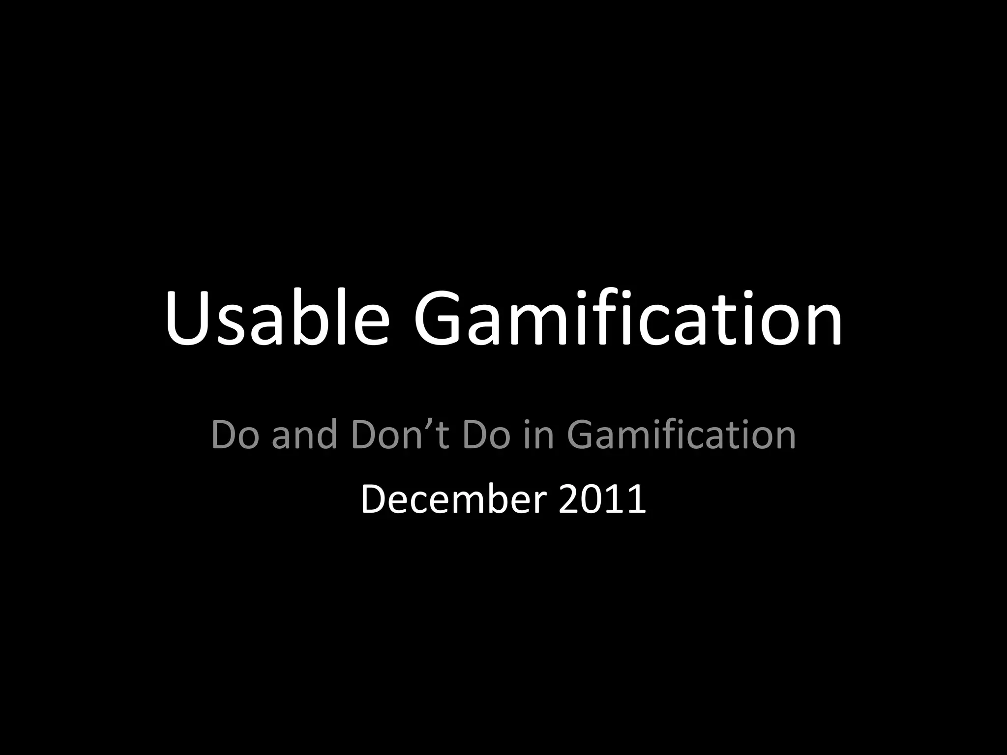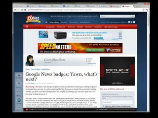This document summarizes a presentation about good and bad gamification. It discusses examples like Foursquare, Waze, Google News badges, and Ribbon Hero 2. Some key points made are: