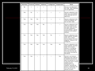 - USB system architecture including north/south bridges and how USB fits into the system.