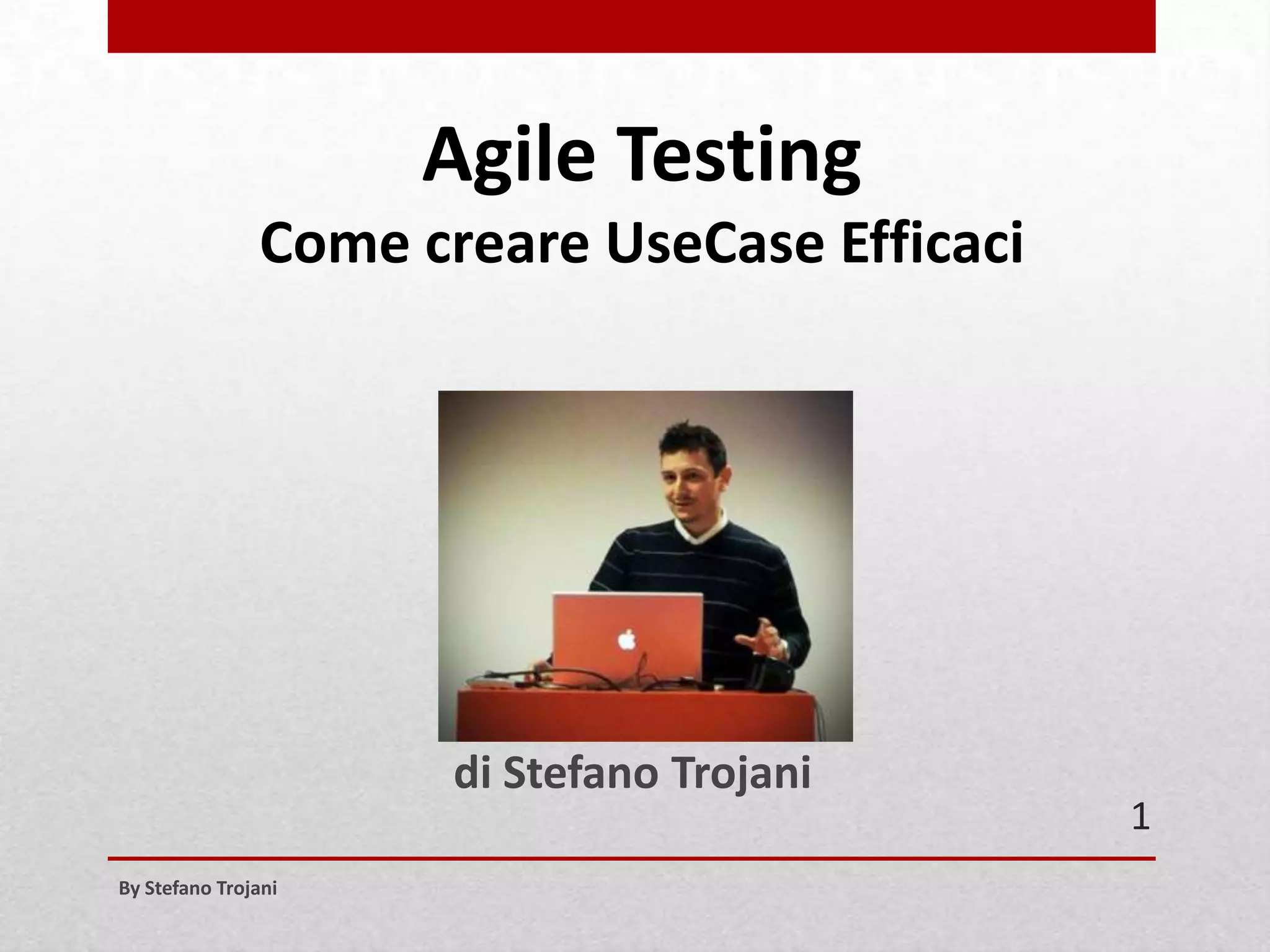 Il documento di Stefano Trojani descrive come creare use case efficaci, iniziando con l'identificazione di attori e obiettivi. Viene enfatizzata l'importanza di scrivere scenari di successo e di mantenere il livello di dettaglio appropriato per evitare ridondanze e complessità eccessive. Le fasi principali includono l'identificazione, la scrittura e l'adattamento degli use case per gli sprint di sviluppo.