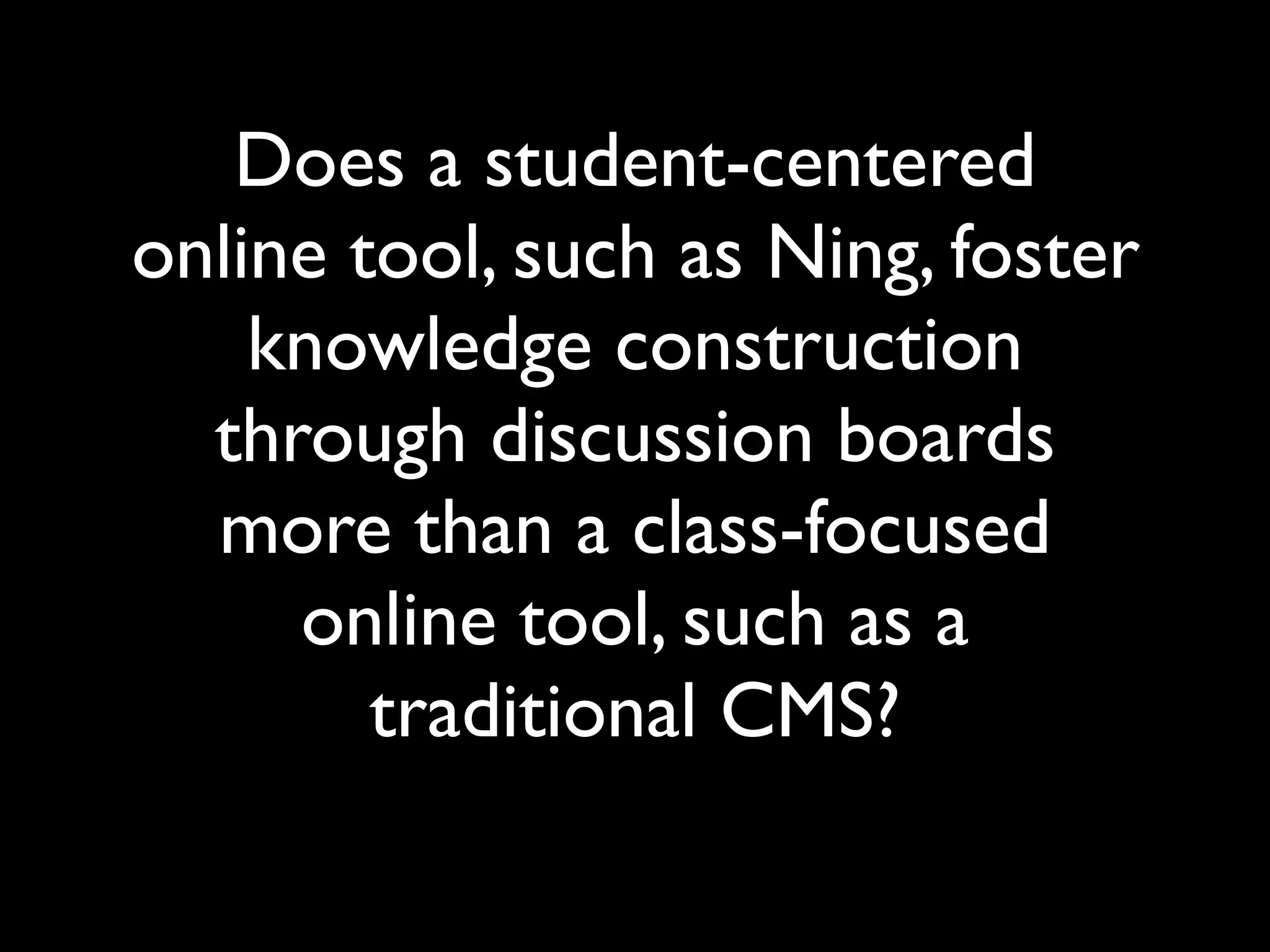 1) The document examines whether an online social networking tool like Ning fosters more knowledge construction through discussion boards than a traditional CMS. 2) A study was conducted comparing discussion board posts between a Ning group and CMS group, finding no significant differences in quality of posts or student motivation between the two. 3) While student interaction was higher in Ning, the discussion questions may not have elicited higher-level knowledge construction, and more research is needed comparing other tools and contexts.