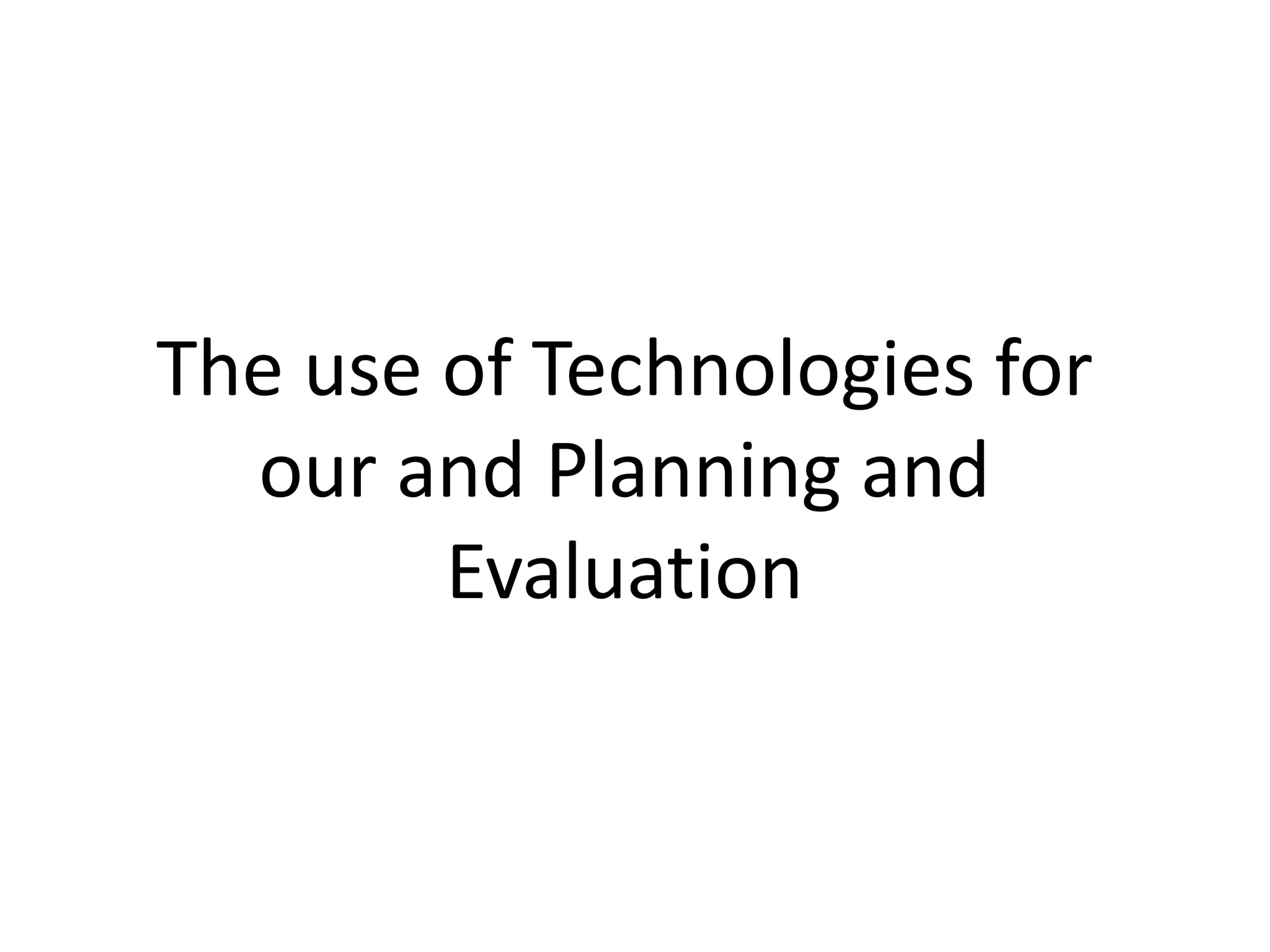 1) The document discusses the planning and evaluation of a student music video project. Various technologies were considered and used at different stages of production including green screen, Sony Vegas Pro, Paint, Microsoft Word, camcorders, cameras, and social media.