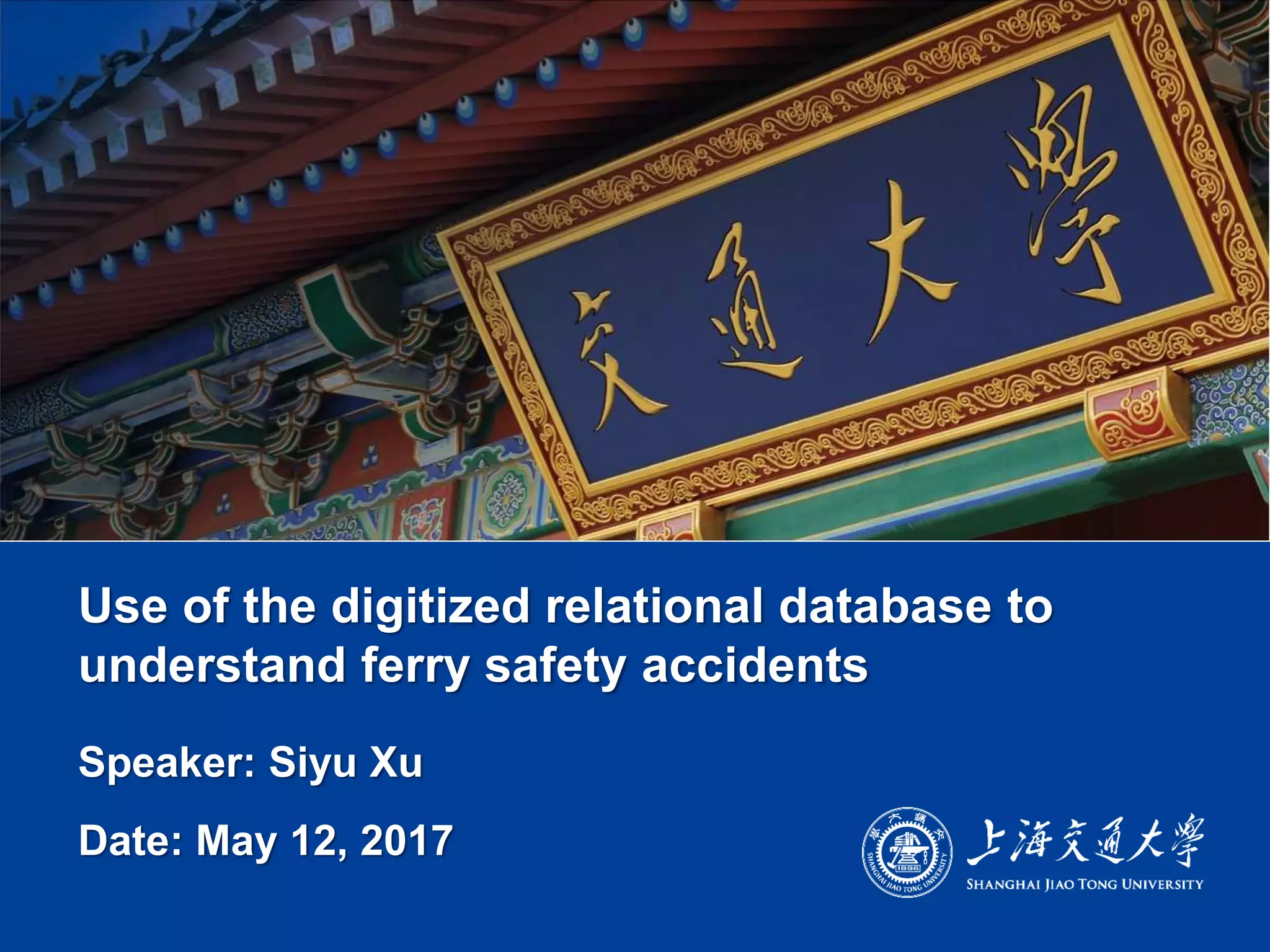This document discusses the design and application of a relational database focused on ferry safety, addressing issues related to ferry accidents and the need for a comprehensive data recording system. It highlights constraints of existing databases, proposes a framework for a dedicated ferry safety database, and outlines the methodology for its implementation. Conclusions include suggestions for developing an efficient global database to improve safety management in ferry transportation.
