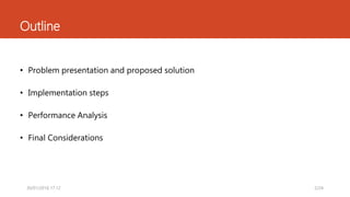 This document discusses running Java programs inside Docker containers on OpenStack. It presents three solutions: 1) using data volumes to mount the Java program into the container, 2) using the Docker exec command to inject the program after container startup, and 3) a hybrid approach. Performance analysis shows container startup time can be improved by using a pre-existing container or improving network performance. The proposed approach transfers Java programs instead of entire VMs to provide a more efficient solution on OpenStack.